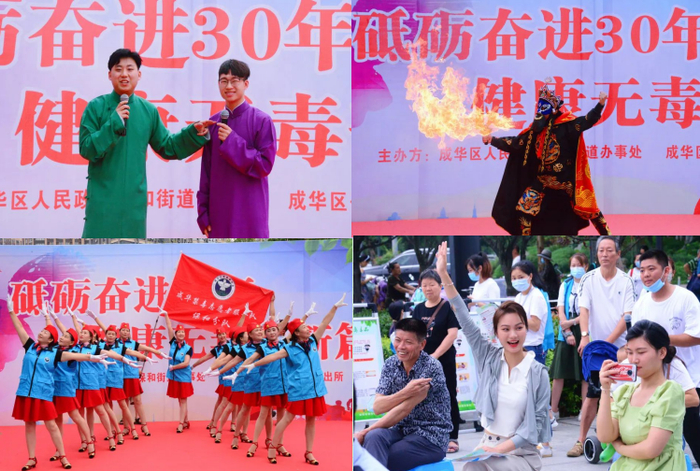 活动现场,两名相声演员相继走上台,通过生动有趣的相声表演,让居民在观看时,不自觉地感受到毒品的危害。“有奖问答”也融入禁毒宣传,大家在寓教于乐的氛围中收获知识,不断强化远离毒品的意识。