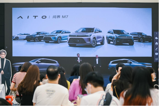 AITO品牌第二款车型问界M7于华为授权体验店(新大新)分会场震撼亮相