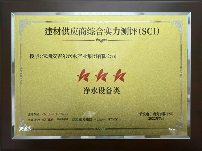 采筑供应商综合指数SCI能反应企业的综合能力在行业、社会的相对贡献和地位,这也是安吉尔此次获得“三星供应商”称号的原因所在,早在2020年,安吉尔就作为唯一受邀净水品牌参加万科采筑第三次联合者大会。