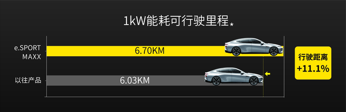 e.SPORT MAXX相对于以往产品1kW可以增加11.1%的行驶距离,即80kW的电池可以行驶多53.6KM