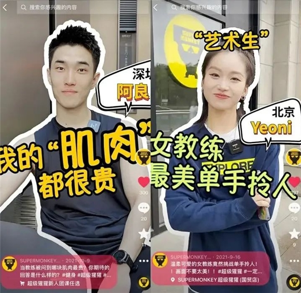 室内或室外的不同场景、活泼或严肃的封面风格,单人或多人的教练搭配,在各个元素上,超级猩猩进行了各种排列组合,用A/B测试的方法试错,直到今年年初,把账号主要内容确定为课程切片的形式。
