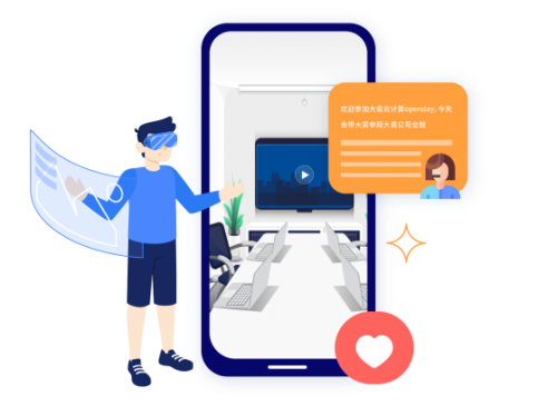 在人才招聘中,一个企业的官方门户不可或缺,很多时候,招聘官网直接决定了候选人对企业的初印象。依托用友大易招聘云,企业可自由选择模块,个性化拼搭出专属的招聘官网,构建属于自己的私域流量池。除了文字内容的平铺直叙,一些互动性较强的形式也逐渐为企业所用,VR全景漫游就可以360度还原企业办公环境,打造游戏化探秘式交互体验,让候选人隔着屏幕就能参观企业的角角落落。