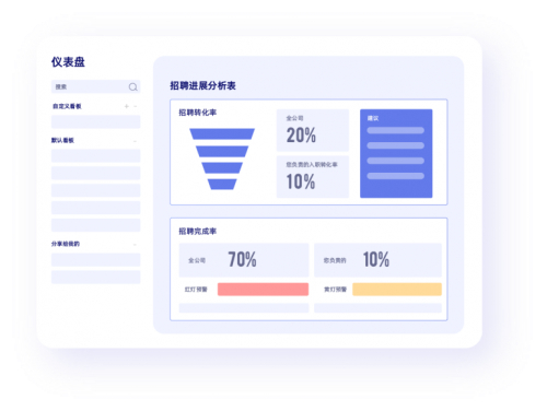 除了提效,系统的价值更在于「在运营的过程中沉淀出宝贵的数据,经过运用和分析,为招聘的决策提供依据」。 数据报表中心除了展现包括「招聘进展追踪」、「渠道效果复盘」、「招聘时效分析」、「投递趋势分析」、「人才特质分析」、「招聘绩效分析」在内的常用招聘数据,还会在数据统计的基础上加入洞察分析,例如,系统可以统计出该HR负责职位的入职转化率,并将其与公司平均水平进行对比,最后基于结果给出优化建议。