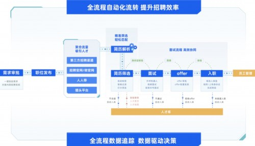 借助用友大易招聘云,从简历筛选到面试安排、offer审批,企业可以构建全流程线上化的招聘通路,实现招聘的高效交付。 在职位发布环节,HR可一键将职位发布于各大招聘网站,并同步收到的全部简历,还可以在发布时预设学历、工作经验等筛选规则,系统便可对简历进行自动筛选;在面试环节,HR可以批量生成面试安排,并一键通知面试官和候选人;面试通过后,系统可支持一键发起offer审批,保证面试流程的顺利进行。