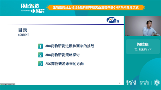 各嘉宾聚焦行业热点话题,为大家带来精彩纷呈的演讲报告,干货满满。其中,恒瑞医药VP 陶维康带来主题为《ADC药物研发进展》演讲报告。陶总从ADC药物研发进展及面临的挑战、ADC药物研发策略和探讨及ADC药物研发未来的方向三个方面,向大家详细解读了ADC药物领域的最新进展。