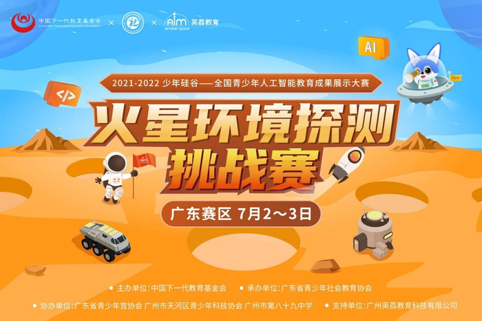 7 月 2~3 日,在紧张热烈的气氛中,第二届(2021~2022学年)少年硅谷 - 全国青少年人工智能教育成果展示大赛 - 火星环境探测挑战赛赛项(广东省)选拔赛成功举办!