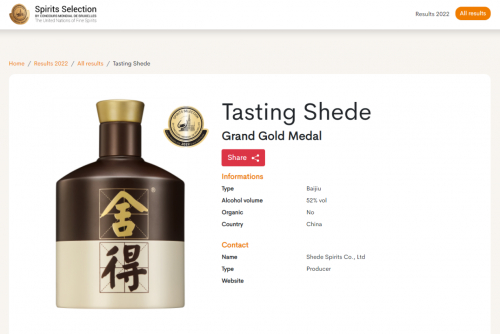 布鲁塞尔国际烈酒大赛榜单公布,舍得酒业斩获浓香唯一大金奖