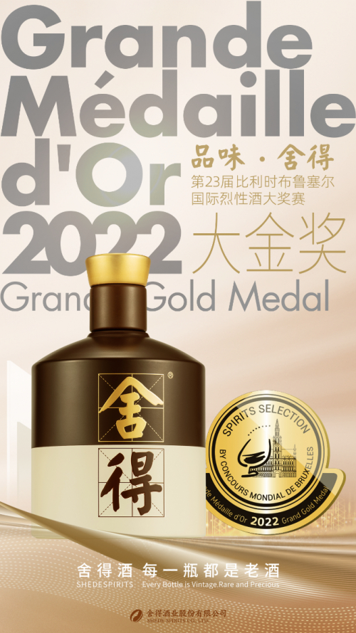 7月4日,第23届比利时布鲁塞尔国际烈性酒大奖赛(Spirits Selection by CMB)官方榜单结果正式向全球发布。舍得酒业旗下主力产品52度品味舍得,在一众参赛酒品中脱颖而出,斩获本届大赛最高奖项——“大金奖”。这也是本次大赛中唯一获得大金奖的浓香型白酒。继2015年吞之乎获此殊荣后,舍得酒业再次让中国老酒在这个全球烈酒角逐的舞台上名扬飘香。
