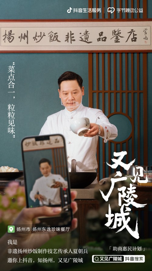近期,扬州市商务局联合抖音生活服务、字节跳动公益共同对扬州包括非遗商家在内的中小商家推出系列公益扶持政策,希望利用平台及影响力优势,促进商家复苏发展,为扬州保留并发扬更多非遗文化。
