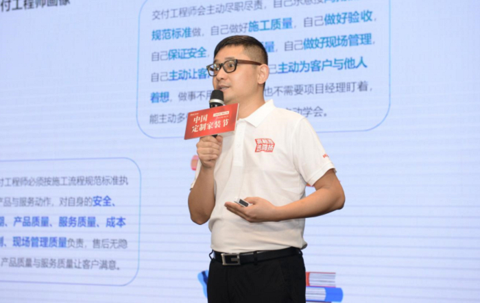 活动现场,李科岐以“交付工程师样板工地”为示例,展示了强弱电布管特色工艺、排水工艺、阳角防碰撞等鸿扬家装特色施工工艺,从室内木作、水电交付、结构交付、墙面交付等方面进行全方位的升级,体现了鸿扬家装硬核的施工交付实力。