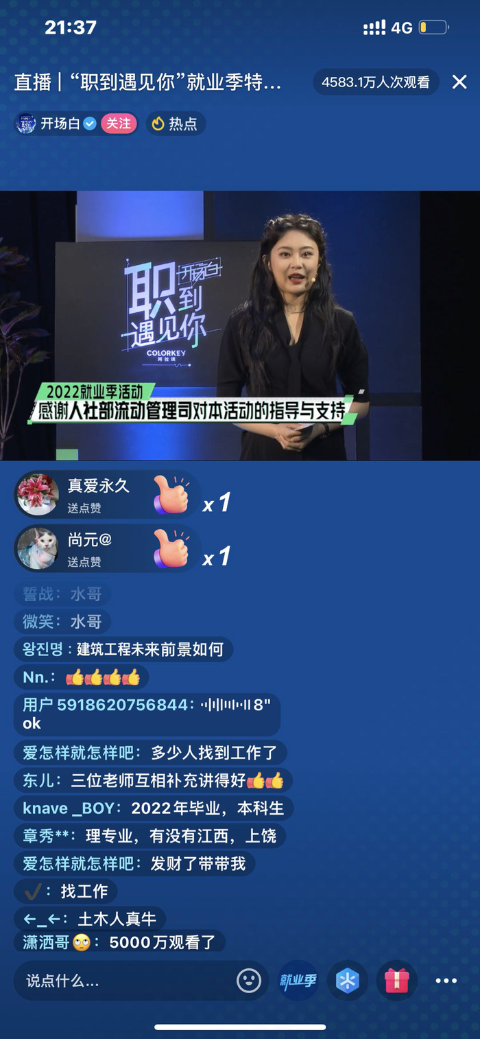 抖音《职到遇见你》就业主题直播观看人次超4500万,金句频出引关注