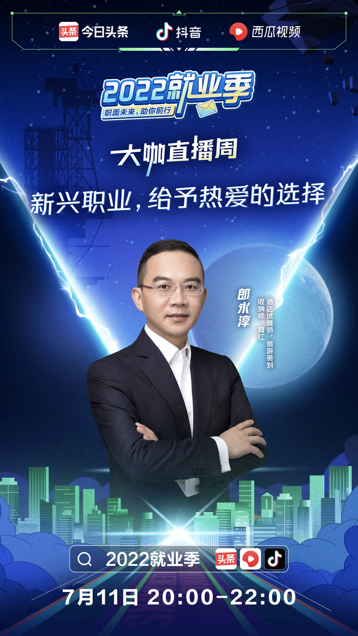 为给求职者提供一站式服务,在人社部流动管理司的指导下,抖音、西瓜视频等上线万家企业招聘职位,发布职位数超百万个。活动将发挥抖音、西瓜视频等的平台优势及中智招聘网的职位资源优势,实现岗位与求职者的精确匹配,助力社会就业。除了《职到遇见你》特别节目外,众多名人大咖、专家学者也为就业季准备了“求职宝典”。7月11日-7月16日,郎永淳、王小骞、黄执中等多位大咖也将从求职攻略、面试技巧、行业选择、就业资讯等多方面连线求职者,为就业助力。