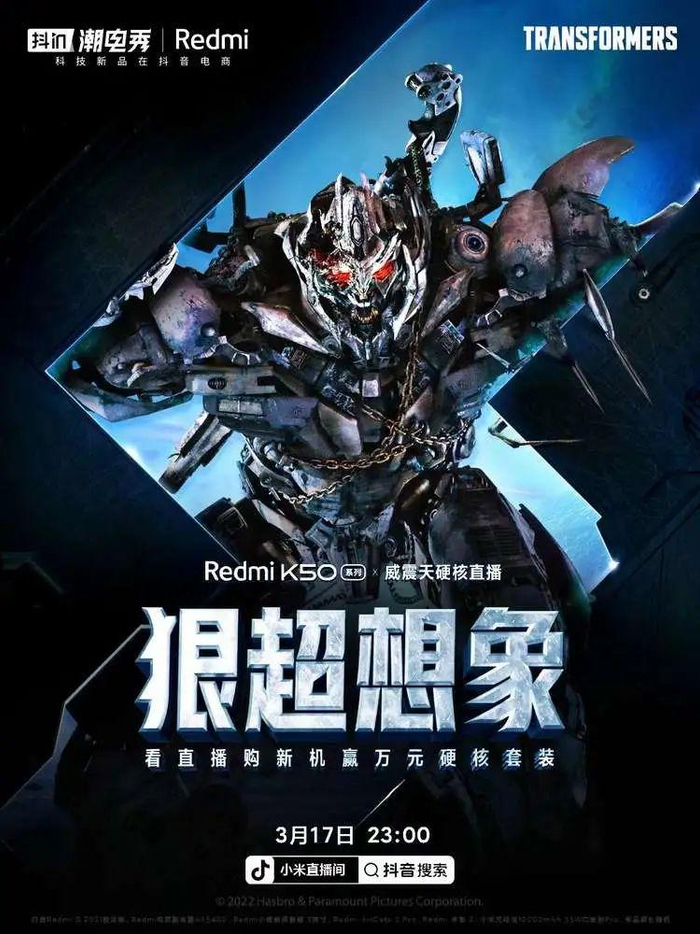 在新品Redmi K50系列的发布上,小米选择合作惊艳人设,将威震天打造成“宇宙种草官”,不仅在3月17日产品发布会直播中与威震天开启互动,此后,还将威震天请入直播间延续热度。当日,小米官方旗舰店直播间观看人数达367万人、峰值在线7.3万人;Redmi红米直播间观看人数78.6万人、峰值在线1.8万人,双直播间人气超过平均水平。