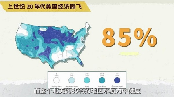 全屋净水作为舶来品,最早兴起于美国。20世纪20年代,率先完成了第二次工业革命的美国,经济实现了跨越式腾飞,人们对于生活品质的要求也越来越高。然而,整个北美地区,约85%的地区水质为中硬度,导致很多家庭出现管道、热水器等结垢现象,家用电器能效降低;人们洗澡后皮肤干痒、头发脱落......水质太硬给当时人们的生活带来了诸多不便。
