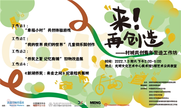 支持单位: 中共深圳市光明区委宣传部、中国建筑学会学生分会、活荔空间营造社、深圳市光明区新湖街道归国华侨联合会