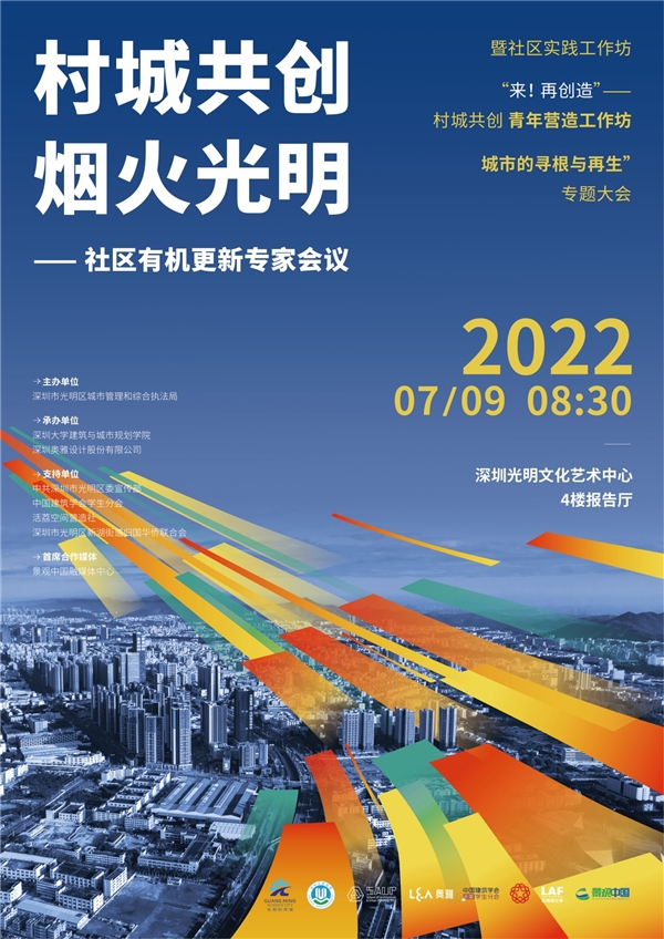由深圳市光明区城市管理和综合执法局主办,深圳大学建筑与城市规划学院、深圳奥雅设计股份有限公司联合承办的“村城共创·烟火光明”——社区有机更新专家会议·暨社区实践工作坊 将于2022年7月9日于深举办。