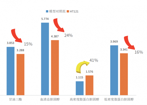 高血脂和肥胖已经成为困扰大部分人的健康问题,在无数次实验及临床研究中发现,高原植物乳杆菌HT121具有降血脂和改善肥胖的作用。经过长达45天的高胆固醇血症大鼠模型进照实验显示,在高原植物乳杆HT121干预下高脂饮食大鼠的血脂得到了显著的改善。