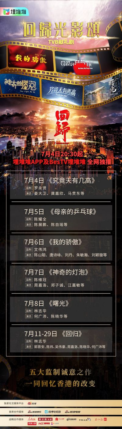 作为时代和香港的记录者,在香港回归祖国25周年的重要节点,TVB推出了系列庆典节目,如7月1日晚的《庆祝香港回归祖国二十五年文艺晚会》,以及《回归光影颂》系列献礼剧等。