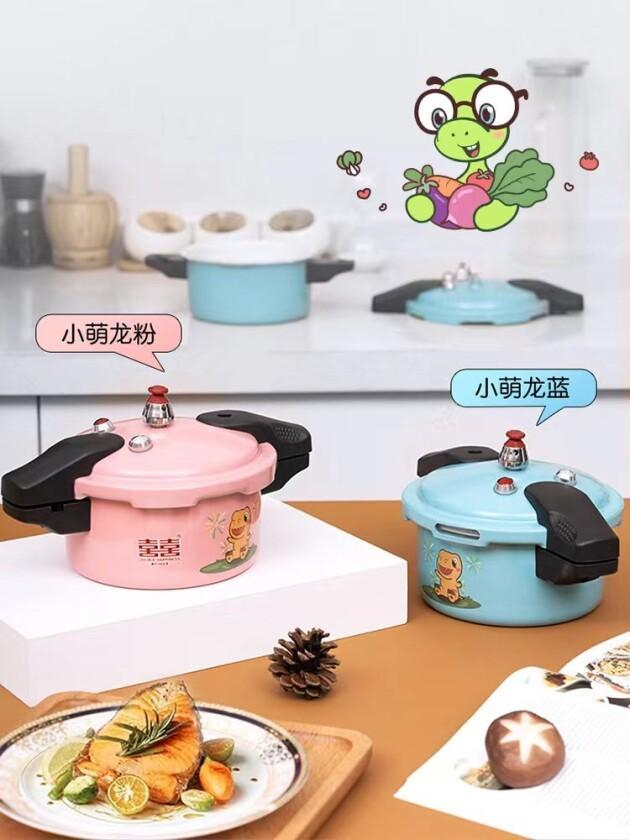 精致的微压锅锅身,印着快把人萌化了的小恐龙卡通形象,这就是双喜电器与国产原创动画精品“三只小恐龙”合作推出的最新联名产品——双喜小萌龙微压辅食锅。