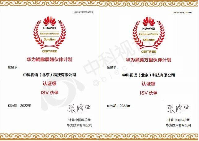 鲲鹏展翅,昇腾万里丨中科视语成为华为认证级ISV合作伙伴!