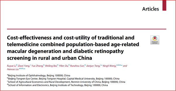作为中国首个眼病“远程筛查”卫生经济学研究文章,该研究不仅为全国范围内开展大规模的多种常见眼病联合筛查项目提供了经济学依据,也让“远程筛查”项目的临床转化和落地推广迈出了至关重要的一步。日前,相关项研究成果也以封面文章形式,在全球权威医学期刊《柳叶刀》子刊Regional Health(Western Pacific)正式刊出。