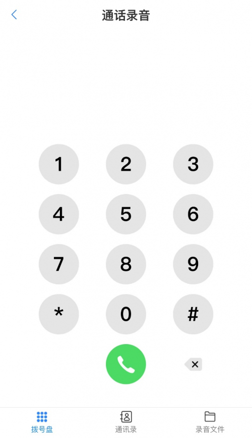 去电通话录音,点击主页面“电话”按钮,出现拨号盘,可以从拨号盘手动输入对方手机号,也可以从通讯录选择对方进行拨打,接通对方后通话录音功能自动开启,通话录音结束挂断电话录音文件自动生成。