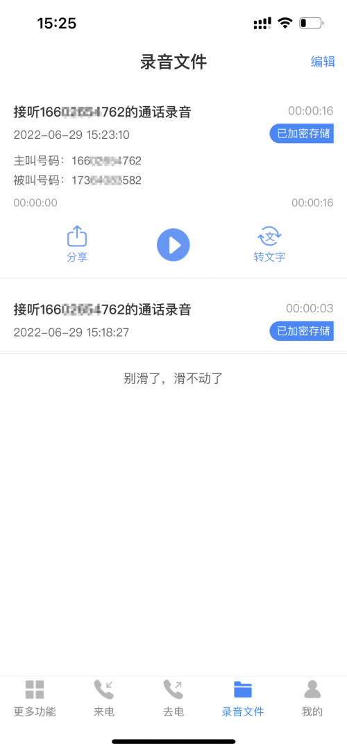 回到主页面点击“电话”按钮,就可以在右下方“录音文件”查看已生成的通话录音文件。