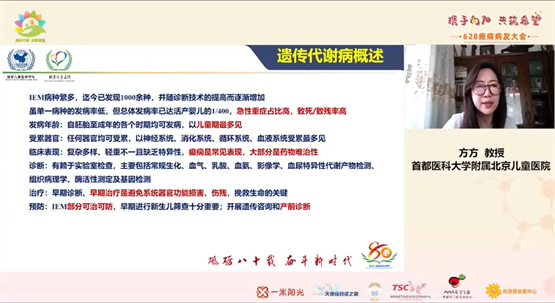 6月25日,628癫痫病友大会在线上顺利举行,广大病友纷纷涌入“向日葵关爱中心”视频号观看直播。上午主会场,杨志仙、周渊峰、李花、方方癫痫领域专家带来了4场精彩纷呈的专题讲座,深入解读了脑电图、难治性癫痫、生酮饮食等备受关注的话题。首都医科大学附属北京儿童医院方方教授,以“透过癫痫发作认识遗传代谢病”为主题,重点介绍了癫痫病因和针对性疗法。