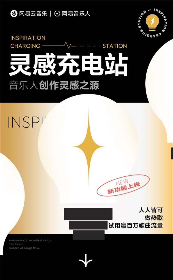 用户可以通过网易云音乐APP首页搜索“灵感充电站”,也可登录音乐人创作者中心,通过“每日灵感”卡片进入体验。同时,在7月9日至7月22日期间,体验灵感充电站的任意功能,创作新歌并投稿,还有机会赢取单首至少4万的歌曲曝光流量。