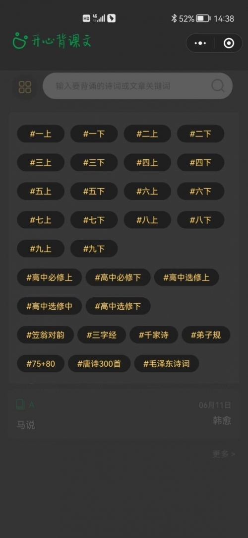 开心背课文小程序推出新功能,激励学生提升背诵诗词热情