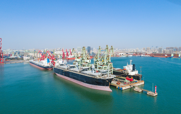船舶在石臼港区的木片专业接卸泊位停稳后,6个大型船舱徐徐打开顶盖,早已在码头等候的日照海关卫检、动植检关员,次序登轮检疫查验,在确认没有有害生物后,批准通关。码头上3台高大的带斗门机随即开始运转。单斗抓取量32立方米的铁爪探入船舱,将我和小伙伴们抓到下方的漏斗里,为了避免在接卸时产生扬尘,漏斗上方还专门安装了喷淋降尘装置。