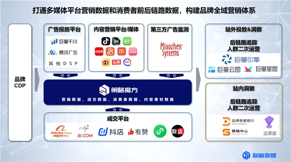 具体到落地层面,新略主要通过其核心产品,MDP策略魔方,把品牌在阿里、字节、京东等平台的电商营销资产(投放类、交易类数据为主)和企业消费者数据资产进行整合,进而形成对生意全局视角的评估和把控,直接帮助品牌建立指导日常电商运营和长期生意经营的全域策略。