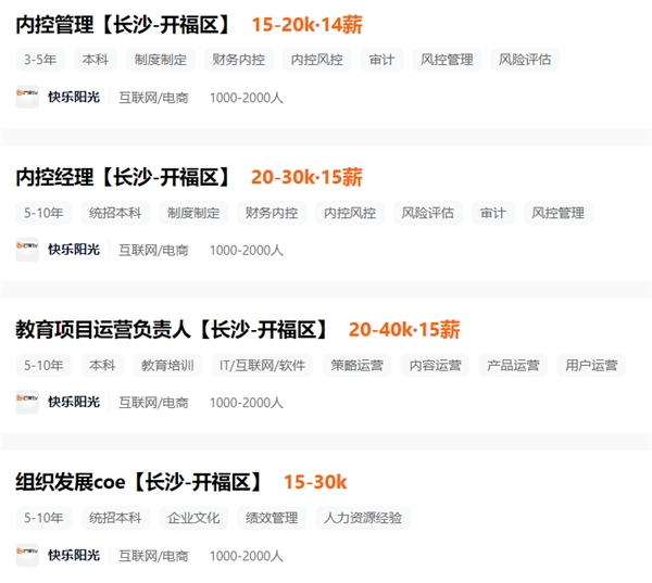 提起快乐阳光,可能很多人陌生,但说到芒果TV,可能无人不知。芒果TV就是快乐阳光推出的众多品牌之一。近年众多王牌综艺如《明星大侦探》均由快乐阳光推出。作为中国“娱乐之都”近年快速崛起的传媒大厂,快乐阳光成立于2006年,隶属于湖南广电,是湖南卫视的“兄弟”企业。如果想在娱乐产业发展,快乐阳光是很不错的选择。从目前释放岗位来看,内控管理、教育项目运营负责人、视频算法工程师等岗位正热招。