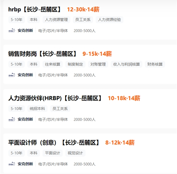 从电脑配件起家的安克创新(300866.SZ)成立于2011年,于2020年在创业板上市,是国内营收规模最大的全球化消费电子品牌之一。安克创新已成功打造出Anker、Soundcore、eufy、Nebula等自主品牌,在AIoT、智能家居、智能声学、智能安防等领域均有出色表现,业务覆盖全球100多个国家与地区。安克创新今年的招聘对象更倾向于拥有3-5年工作经验的跨境人才,释放的热门岗位包括数据分析经理、产品经理、海外客服、渠道经理等。消费电子、电商领域的优秀人才可重点关注。