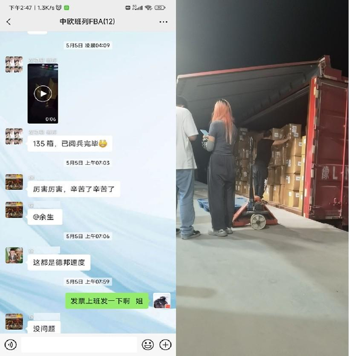 德邦快递跨境业务销售专员冯纬在了解到徐女士的情况后,提出了一个解决方案:客户用工厂的面包车将货物运输至许昌高速口,德邦快递安排车辆到高速路口接线,将货物中转出来。双方觉得该方案可行,便制定了更加细化的步骤,当天晚上十点左右就确定好车辆、司机及具体的流程。凌晨四点多,总计五吨的135箱货物,全部交接完毕。这一方案,确保了徐女士如期参与亚马逊的会员日活动,不久之后这些货物将通过德邦快递的亚欧班列专线发往欧洲各地。
