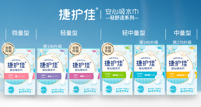 同时,捷护佳在吸收量方面也做了细分,适合多个漏尿程度的人群,其不同的形状、尺寸、厚度都进行了特别设计,比如有针对轻中度漏尿用户有「轻舒适系列」、中重度漏尿用户的「超吸收系列」,患者可以根据自己的实际情况进行选择。