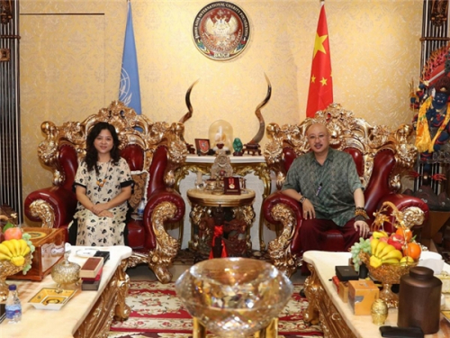 联合国谘商组织-世贸联合基金总会创办人拿督斯里吴罡豪教授(右)与中国移动通信联合会党支部书记汪媛媛(左)亲切会晤,并就元宇宙的发展方向、技术创新、应用拓展、资源成果等进行全面交流。