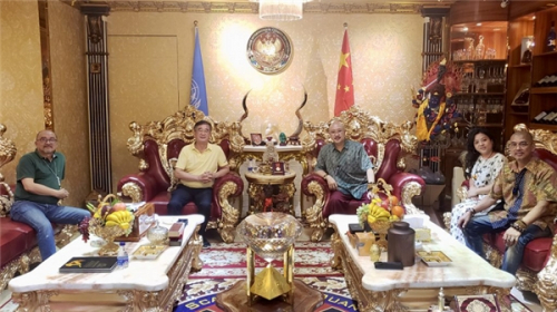 联合国环境科政商论坛指导委员拿督斯里吴罡豪教授(右3),深圳市原副市长、厦门市原副市长卓钦锐(左2),中国移动通信联合会党支部书记汪媛媛(右2),深圳市政协常委、国际标量波量子研究院常务副院长李榕(左1),国际标量波量子研究院办公室主任陈文生教授(右1)进行会晤。