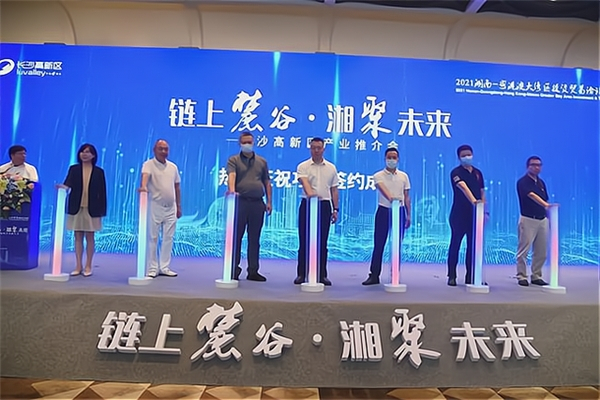 ▲ 2021年7月,“链上麓谷·湘聚未来”长沙高新区产业推介会在深圳举行。6个企业项目与长沙高新区进行签约,总投资额达18亿元。