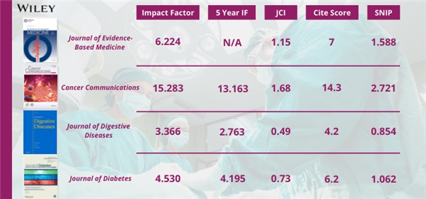 Wiley与中国的合作伙伴在医学领域深度合作,共同出版的期刊涵盖全科医学、肿瘤、药理与制药、内分泌与代谢、神经科学、外科、医学实验室技术、整形外科、心血管、风湿、儿科、呼吸系统等12个学科。