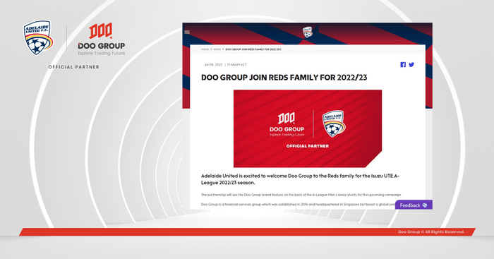 在此,Doo Group 诚邀各位投资者和足球爱好者一同关注 AUFC 的在2022/2023 赛季表现,共同分享欢乐时刻。同时,让我们共同见证 AUFC 作为一支坚持不懈、意志坚韧的队伍,全力争夺赛季最高殊荣的精彩表现!