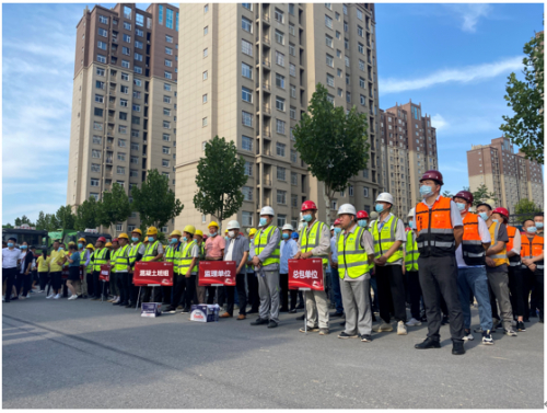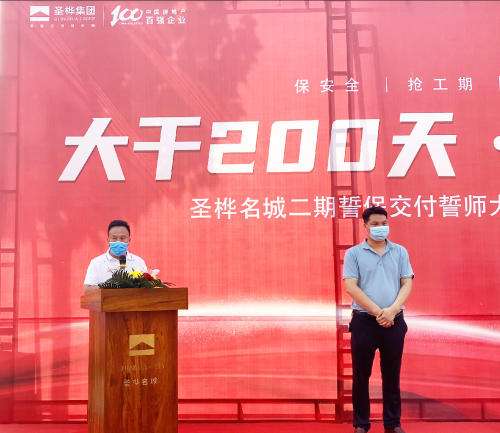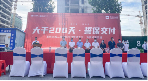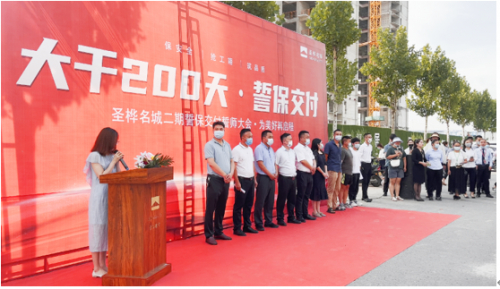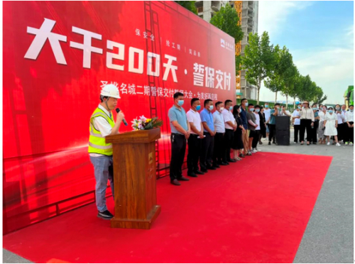 7月的周口天朗气清、草木欣然。在市住建局、区住建局、示范区管委会及相关单位支持和指导下,在中冶天工大力支持和配合下,在广大业主理解和信任下,12日上午,圣桦名城二期项目“大干200天·誓保交付”誓师大会在施工现场圆满举行,庄重的誓师会后,各工种的施工人员随即奔赴各自岗位,抢抓良好天气的有利时段,加速生产,不负每一位业主的期许与信赖。