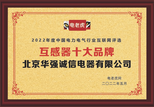 经过数十天的激烈角逐, 北京华强诚信电器有限公司凭借超强的综合实力以及品牌影响力,摘得了2022年度中国电力电气行业“互感器十大品牌” 荣誉称号!