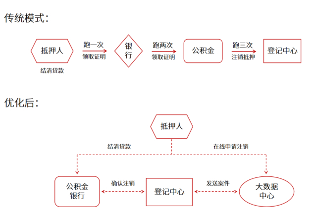 以下是新旧流程对比(以商业+公积金组合贷款的抵押权注销为例):