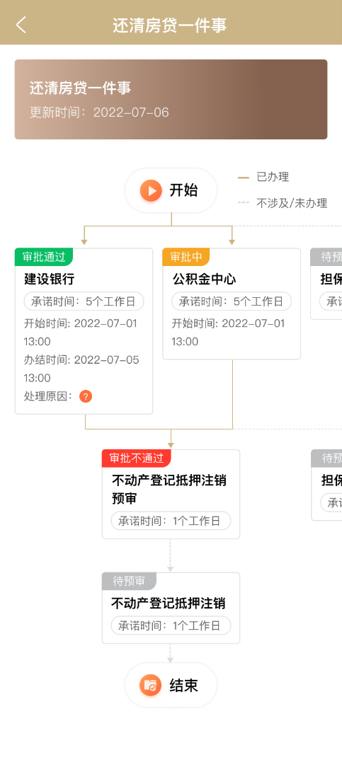 2、商业贷款还清状态在提交办件后,由银行审核确认,并给出相应结论。