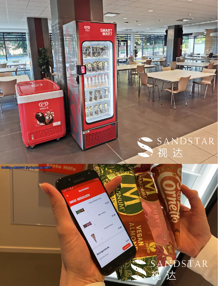 SandStar视达智能冷冻柜采用动态视觉技术,消费者仅需“扫码/刷卡开门-自由选货-关门自动结算”,真正做到了“秒级购物、即拿即走”,整个过程就像从自家冰箱拿东西一样轻松,省去了预选商品、等待弹簧道推出商品、弯腰拿取商品等一系列传统自贩机的繁琐流程。让消费者在炎热的夏季不需排队等待,即时满足,瞬间解渴。