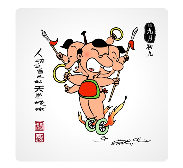 【哪吒神童降世 】取三头六臂,大显神通之意。