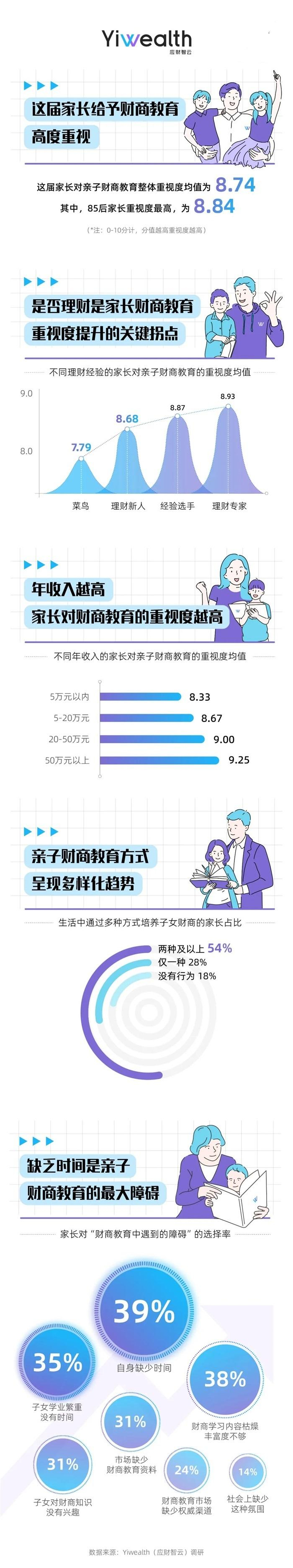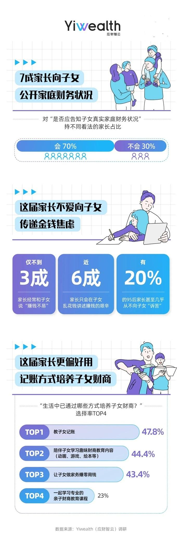 此前, Yiwealth(应财智云)面向8090后父母发起调研,并推出《“8090”亲子财商教育现状调查报告》。本次调研总计回收1003份样本,其中,80%参与者来自于二线及以上城市,本科学历占比9成以上。