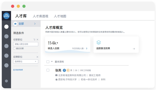 另外,对于游戏这种创造性比较强的行业来说,人才是核心,行业本身比较垂直且人才内卷严重,对企业来说,人才的沉淀非常重要,所以,企业要建立人才库,沉淀资源,并且要制定精细的人才库运营策略,定期盘活人才库里的资源,这点就必须要一个系统来承载,Moka的人才库刚好可以满足需求。