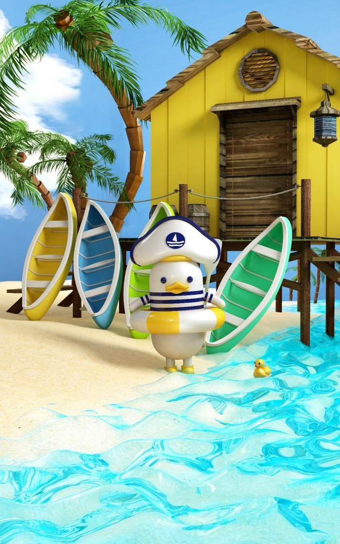 正是因为水手们的信仰,“趣浪鸭”也让水手们从一场海啸中幸免于难。而为了感谢“趣浪鸭”的恩情,村民们也在海边建立起一个穿着海魂衫的趣浪鸭石碑,并授予趣浪鸭“最佳领航者”称号。慢慢地,趣浪鸭就成为了小镇吉祥物与代表,也成为了水手们驰骋海洋的守护者。